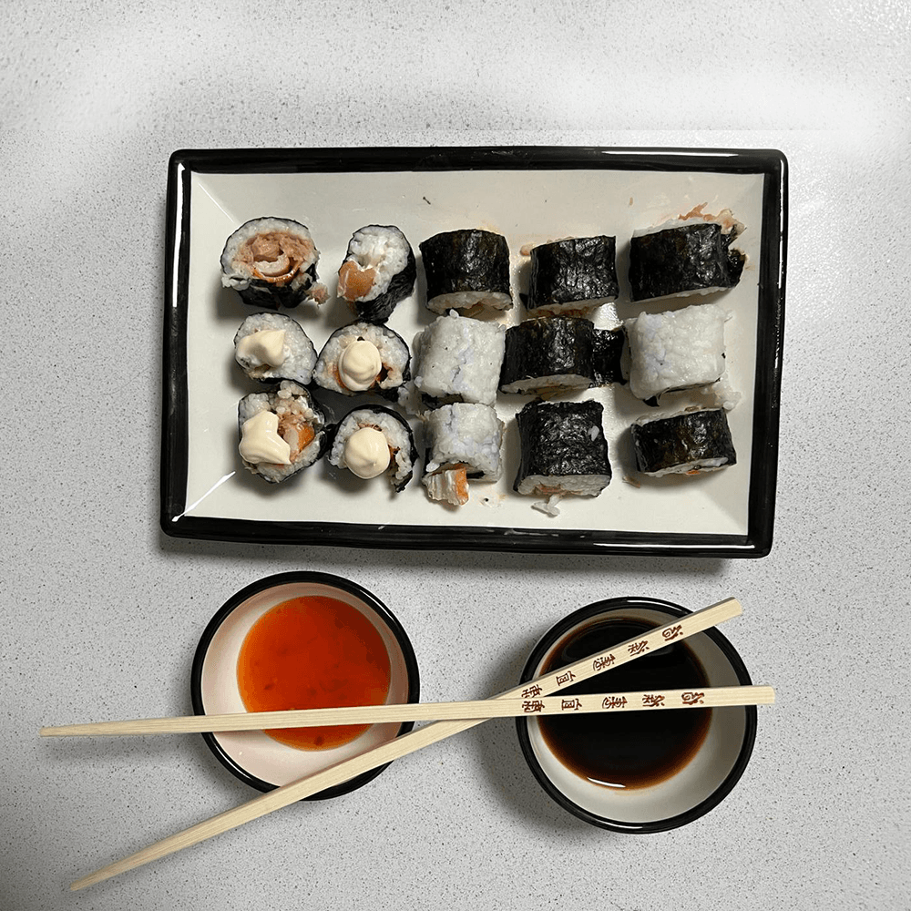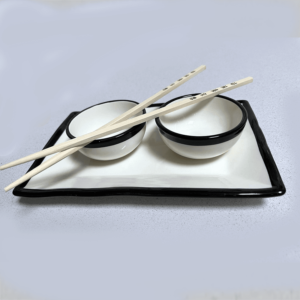 Set Sushi de cerámica 3 piezas en color blanco con filo en negro: